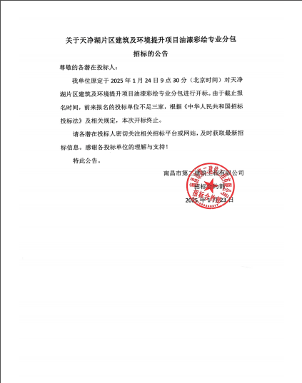 关于天净湖片区建筑及环境提升项目油漆彩绘专业分包招标的公告